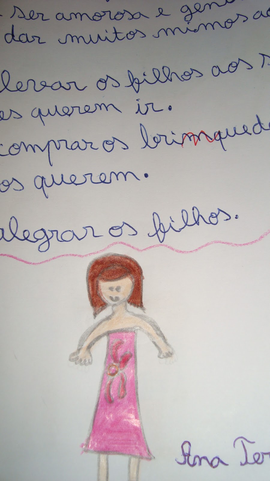 Uma boa mãe deve cheirar a flores. Deve ajudar a avó. Deve ajudar os filhos nos trabalhos de casa.