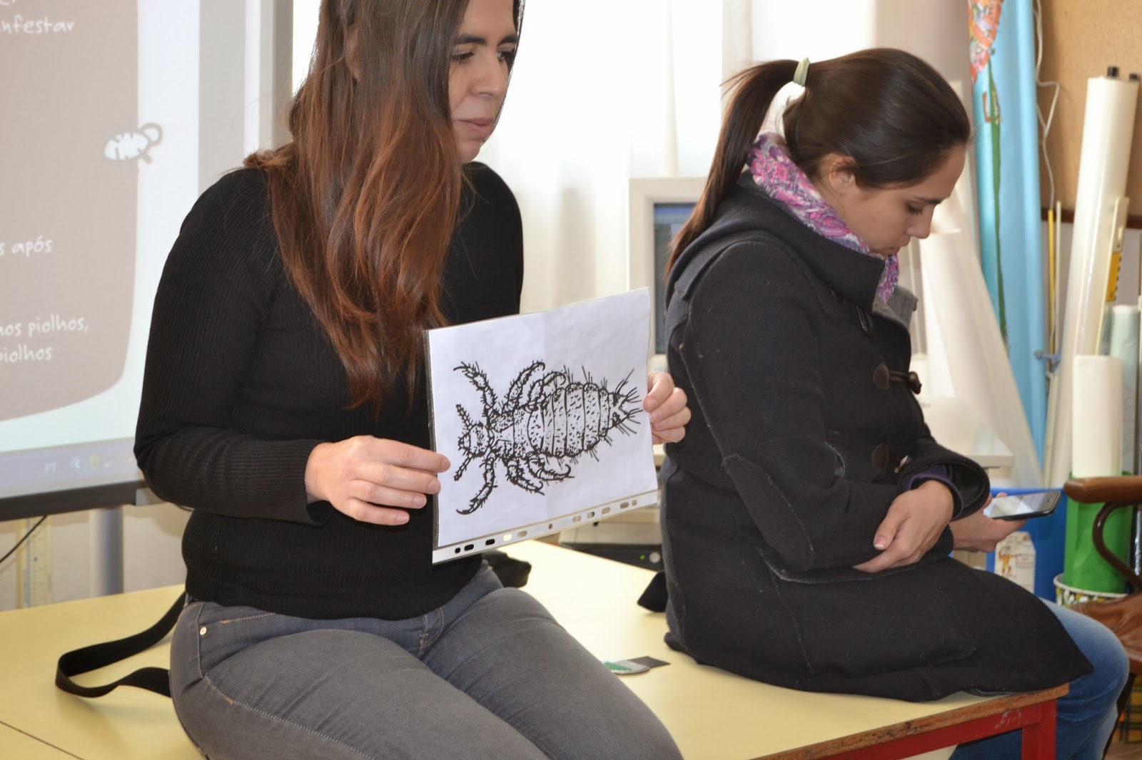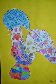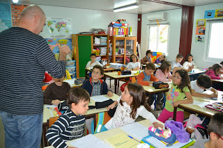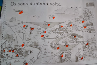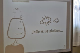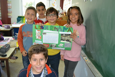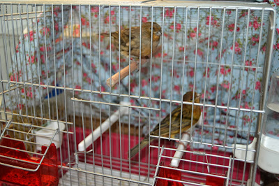 companhia na nossa sala de aula: uma gaiola com um casal de lindos canários.